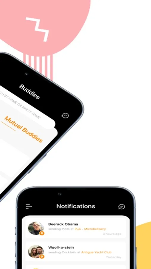 SENDING IT - Send a push notification to your friends to let them know where you are having a drink. You can include a picture of the beverage or who you’re with just to make them even more jealous.