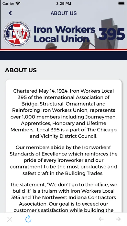 Chartered May 14, 1924, Iron Workers Local 395 of the International Association of Bridge, Structural, Ornamental and Reinforcing Iron Workers Union, represents over 1,000 members including Journeymen, Apprentices, Honorary and Lifetime Members. Local 395 is a part of The Chicago and Vicinity District Council. Our members abide by the Ironworkers’ Standards of Excellence which reinforces the pride of every ironworker and our commitment to be the most productive and safest craft in the Building Trades. The statement, “We don’t go to the office, we build it” is a truism with Iron Workers Local 395 and The Northwest Indiana Contractors Association. Our goal is to exceed our customer’s satisfaction while building the best projects – Schools, Bridges, Office Buildings, Malls, Industrial and Steel Mills. We provide a Skilled, OSHA Trained, Drug-Free Workforce, as well as many other Certifications from a 4 year training program. Every time you hire an Iron Worker from Local 395, you should feel confident you are receiving highly trained, highly skilled and drug free Journeymen and Apprentices that take their job and your project seriously. Iron Workers Local 395 is very involved in the communities we serve; with numerous members taking active roles in local charities and youth organizations.