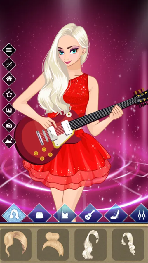 This is an unusual dress up game, you can find some lessons here, you have to go to the Rock concert first. To perform, you need to choose the right outfit, sparkling skirts, shoes, and unique hairstyles, and of course, a rock star must hold a guitar in her hands, because she will perform her adorable song. Once you've finished dressing up as a Rock Star, you and your friend will have to go to school. Yes, I know school is boring, but this school is completely different, because you don’t have to study there, only to choose outfits. Every schoolgirl would be happy with such a wardrobe! Pick up outfits for girlfriends, for schoolgirls, make perfect combinations. Be sure to improvise: accessories, hairstyle, clothes - dress up games for girls will cheer you up and will not let you get bored.