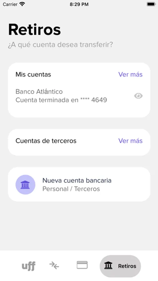 Utiliza tus fondos dentro de UffPago como quieras. Transfiere tus fondos a tus cuentas personales en otros bancos. Y si tienes que enviarle fondos a un tercero directamente en su cuenta bancaria, en UffPago eso es completamente posible.
