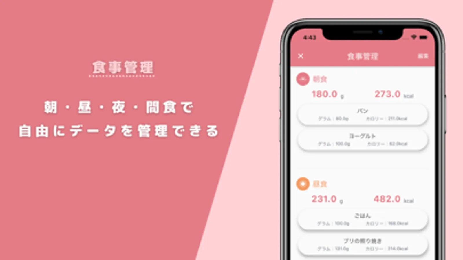 日々の体重や食事の記録管理ができ、SNSとしてダイエット仲間と繋がりながら継続しやすい◎