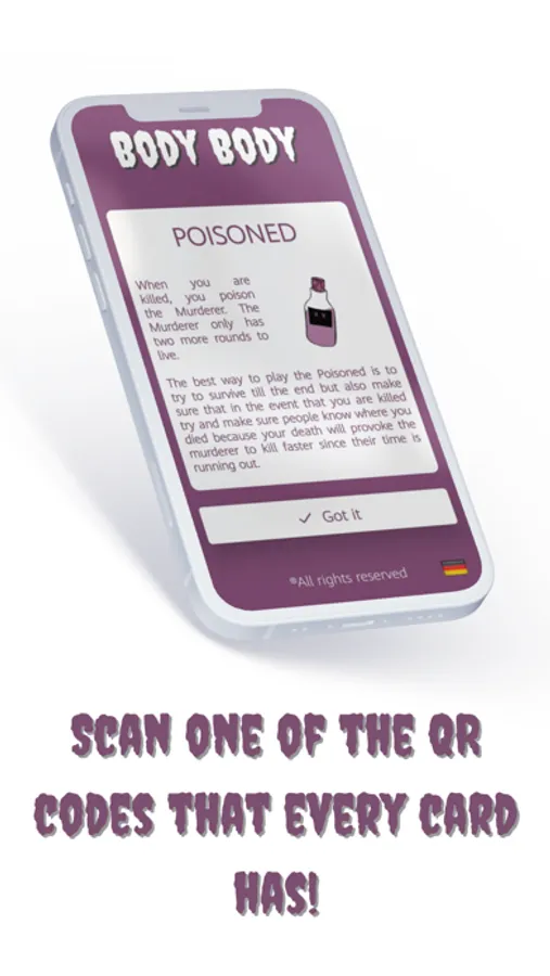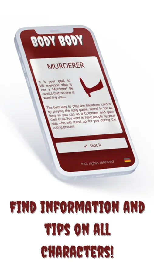 Body Body is an exhilarating and strategic group activity invites you to gather for a thrilling game. As a uniquely gruesome character, you must discover who is murdering fellows in your colony-- perhaps it could be you. Navigate your way through halls and rooms in desperate search of a dead body: a ghastly victim of the murderers. Unravel the identity of the murderers before they kill off the entire colony. Watch your back, your fellows could turn on you.