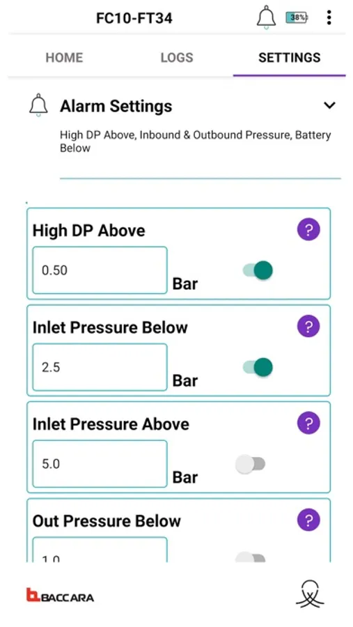 Upstream & Downstream pressures, DP readings, Full data logging, Battery status and more.
