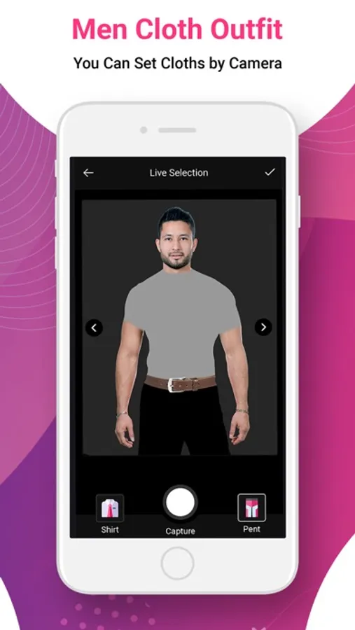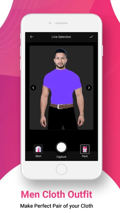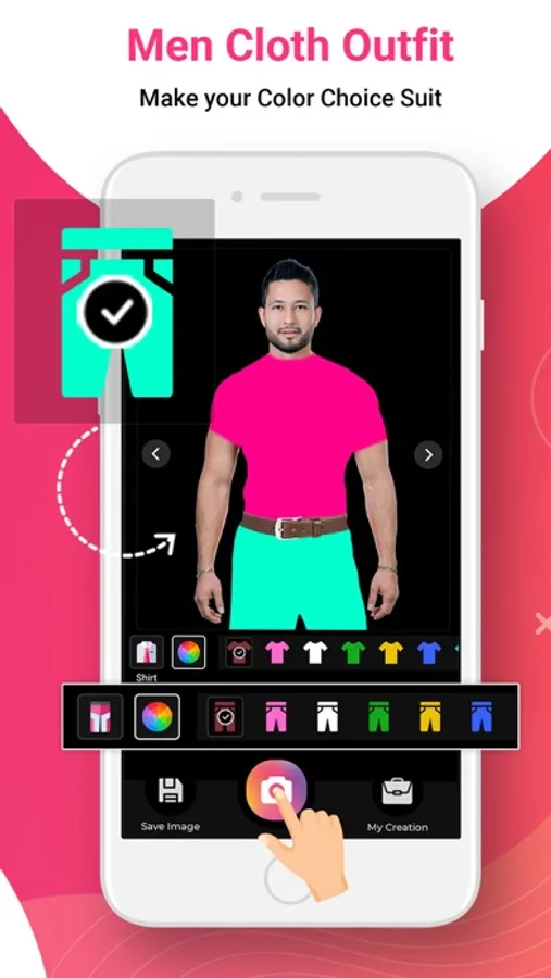 -Click the camera button, select pent and shirt adjust your camera and click to save your best outfit.