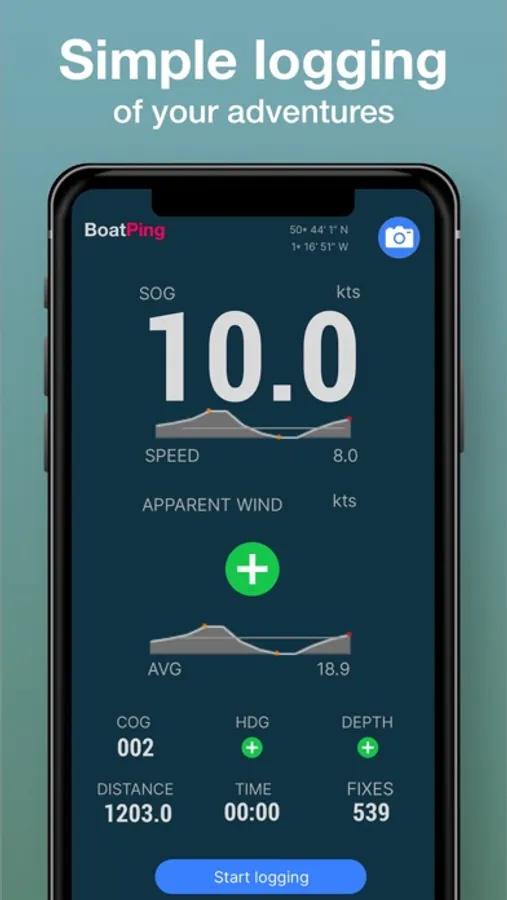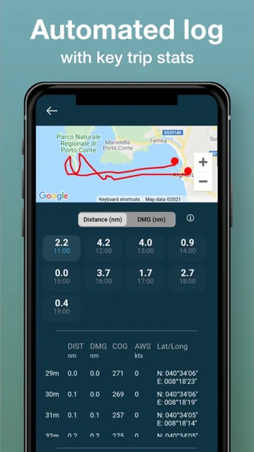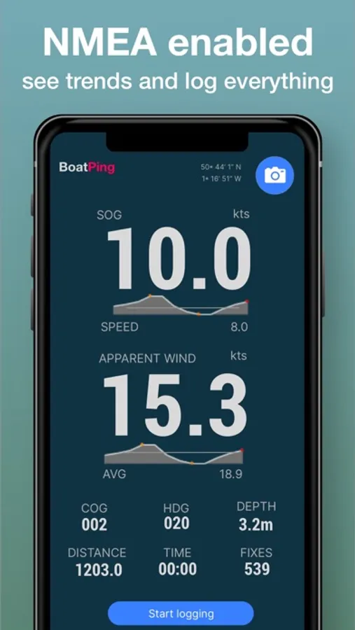 - Monitor & Automatically log: Wind, Depth, SOG, COG, HDG, Distance, Trip time