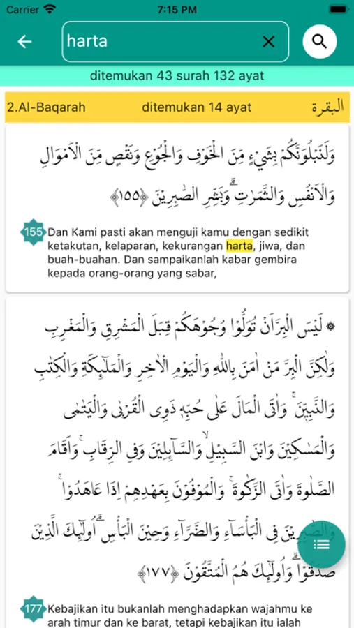 -Menu pencarian kandungan surah/ ayat dalam terjemahan atau bahasa arab