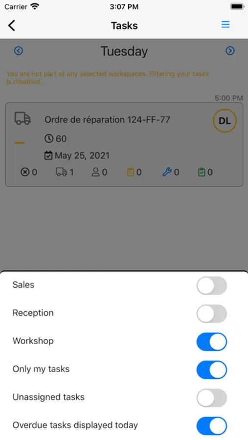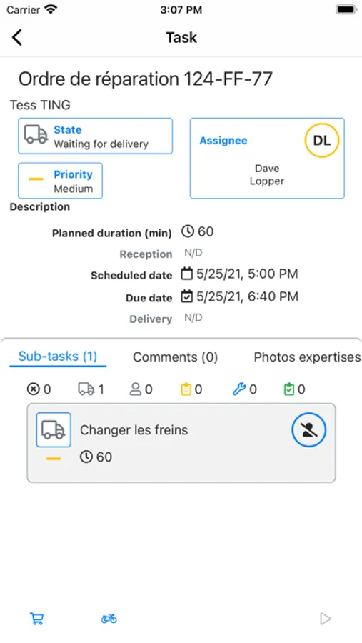 * manage you tasks (workshop, commercial etc.)