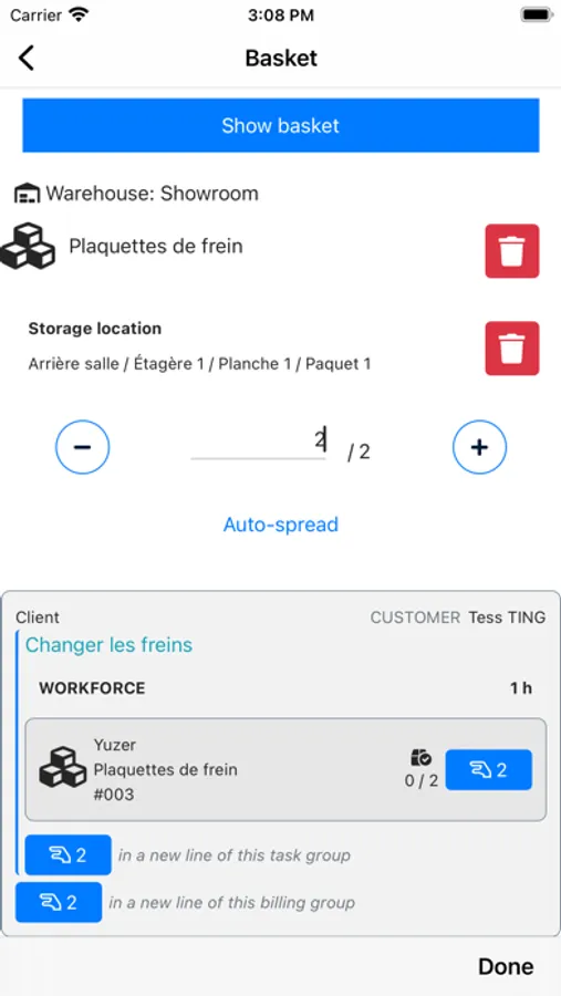 * manage your basket and picking from the app