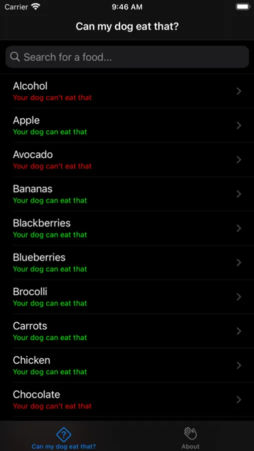 If like me, a fellow dog owner of a particually hungry dog, you spend a surprising amount of time searching "Can my dog eat that?" or "Do I need to call a vet if my dog eats this?" then this app might save you a few mintues and perhaps save you some anxiety.