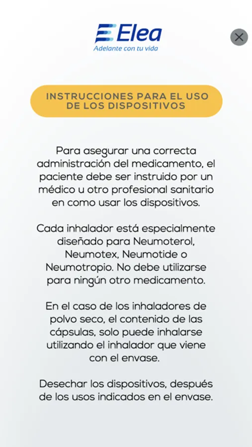 Videos explicativos de uso de dispositivos inhaladores para productos de salud respiratoria: Neumotropio, Neumotex, Neumotide, Neumoterol y Aerocámara. Línea Respiratoria Elea.