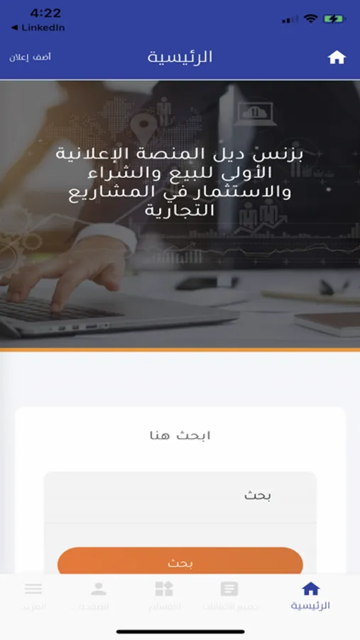 التطبيق الأول للبيع والشراء والاستثمار في المشاريع التجارية