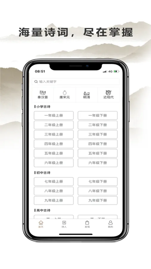 儒雅中国风的精美设计,让你置身于如画般的诗意。更有独特的古风元素融入其中,例如:山水画的背景、古色古香的笔触、繁体竖排的版式设计、以及古典音乐的配乐等,让你仿佛穿越时空置身于古代文人的世界中。这款古诗应用将成为您探索文学海洋、领略古诗韵味的得力助手。让我们一起沉浸在这个充满诗意的世界中,感受中华文化的千年传承。现在就打开iOS App Store,下载我们的古诗应用,开启您的文化之旅吧!