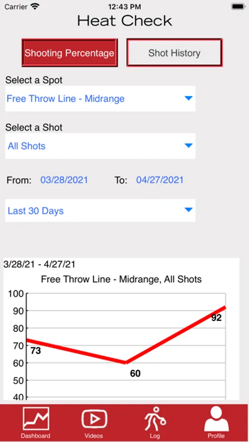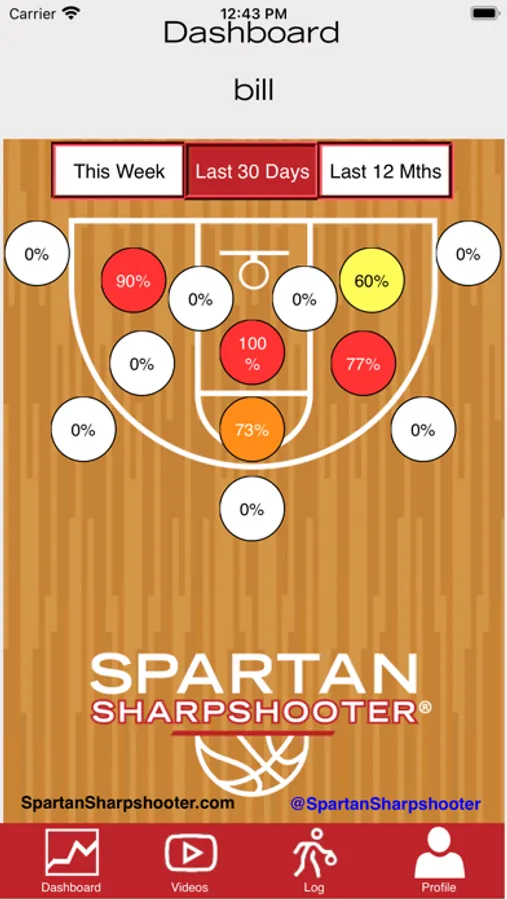 Basketball training tool to log your shots and track your progress. Input your attempts and makes as you practice various shots from different spots on the court. Monitor your shooting with straightforward displays and keep training to improve your efficiency.