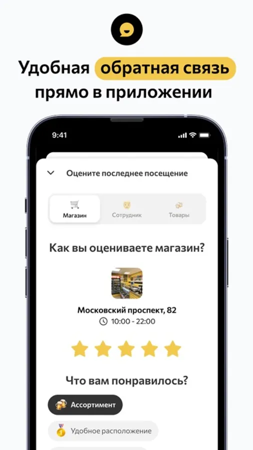 - Вы можете оставлять отзывы о товаре/магазине/сотруднике и получать быструю обратную связь