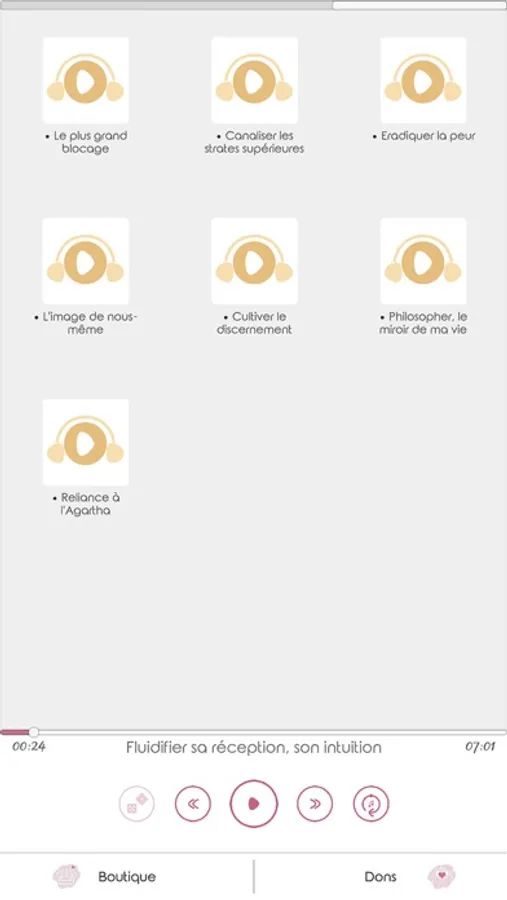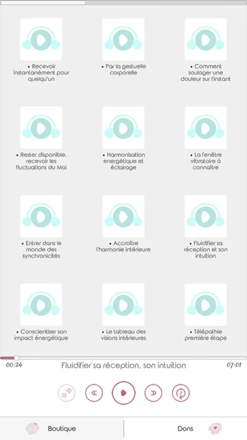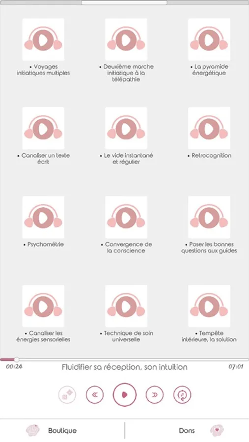 Regroupés dans une application ne nécessitant pas d'accès au WI-FI, vous pourrez à tout moment vous exercer sur des points précis tels que la réception d'images, de symboles, de sons mais aussi de pratiquer des soins, des projections de conscience et autre connexions conscientes avec le monde subtil.