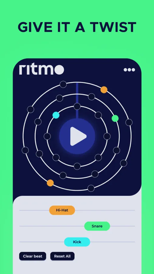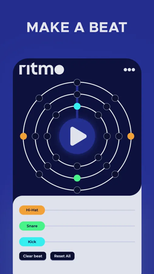 Ritmo is a redefined beatmaker. It is meant to help people create new and interesting beats/rhythms in a way they never made them before. Encouraging the user to think of a beat as a circle instead of a straight path, you can more easily see and find new possibilities.