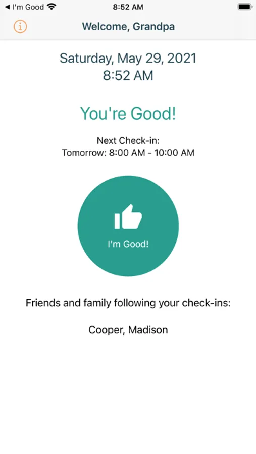 I'm Good-VIP enables anyone important to you (a VIP) to check-in daily based on a schedule you create. With the simple tap of a button, I'm Good-VIP lets you know that your VIPs are okay.