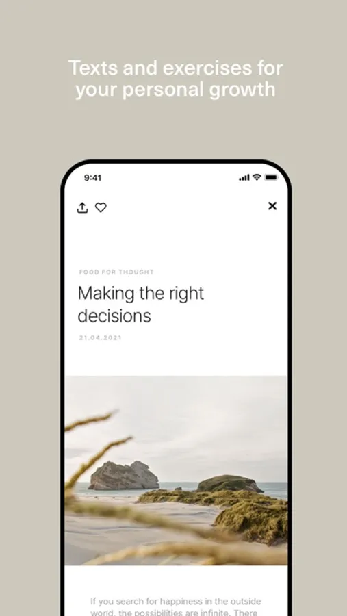 Being happy is not reserved for a select few, it can be learned by anyone. With our app you embark on your personal journey to more fulfillment and contentment in your everyday life. This doesn't happen in one big leap, but through daily small steps. Evano Everyday supports you on this exciting journey.