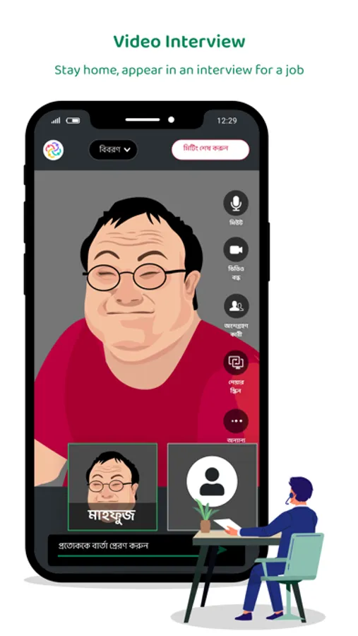 ● Video interview with Employer from anywhere with built in functionalities.