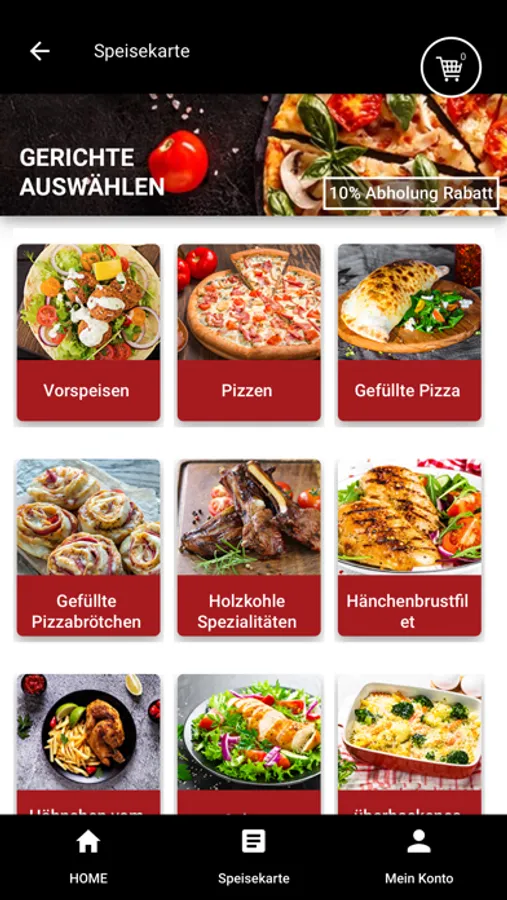 Pizza, Pasta, Hänchenbrustfilet, Holzkohle Spezialitäten, Salate, Baguettes und viel mehr!