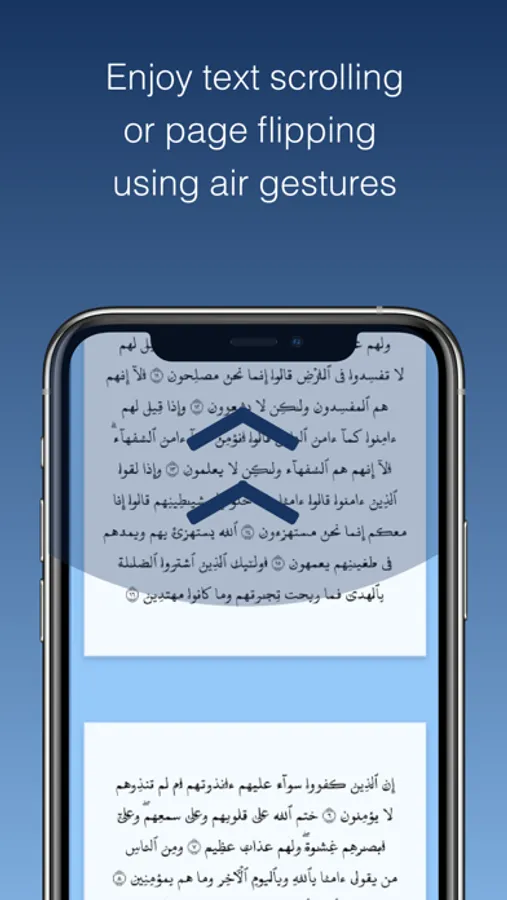 بعد أن تنتهي من قراءة سورة الفاتحة، أَشِر للجهاز عن بعد، وسيبدأ النص بالتمرير.