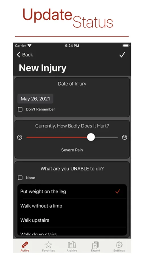 Record, Review and Report on all you injuries so you can remain aware and recover faster!