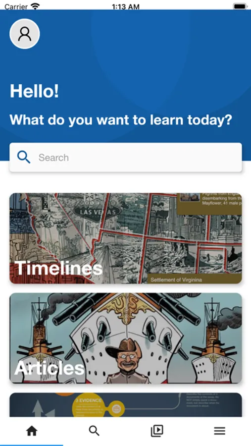 * Interactive timelines - History is a story! Our rich, content-packed timelines help you visualize how these stories connect with multiple views, appended visuals, and highlighted themes