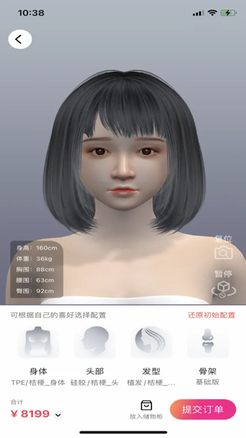 可通过APP选配功能选择不同头型、发型、身体搭配出符合个人需求的产品,同时保证发货前有实体视频及图片验货,保证商品发货私密性。