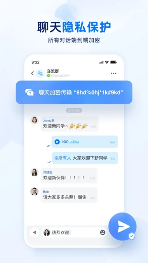 密小盟是一款端到端加密的即时通信软件,致力于帮助企业更好的保护自己的知识产权和用户隐私,密小盟最高可提供20万人群聊能力,并且数据全链路加密,只有终端用户可以查看;群内的成员、文件、图片、消息等内容均受到管理员的权限管理,既能保护企业材料不泄露,也能保护群成员信息安全;密小盟为企业用户提供专属的频道”联盟“,企业可在联盟中搭建自己的广告区,以及创建各个运营群,在用户运营场景内可自由发挥,无需担心信息泄露。