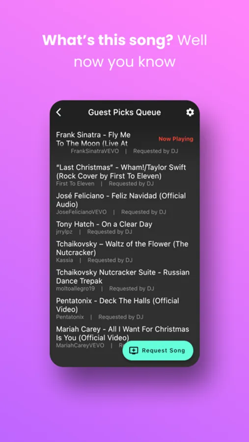 You are in control of the songs you want, request a song, and see what others are requesting!