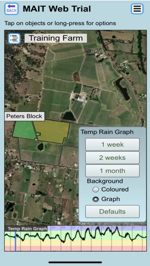 Access and view data from your MAIT iNTELLiTROL cloud enabled field units and/or your MAIT iNTELLiTROL base station(s). Monitor soil moisture probes, tank levels, weather stations, pivot/linear positions and states, pump pressures/flows and more. Data is presented in graphs and collections of gauges in consoles. Multi user access means multiple personal can access the same information at the same time. User access levels can be setup from guests, to view chosen data only, through to admin users, with full access to your network(s).