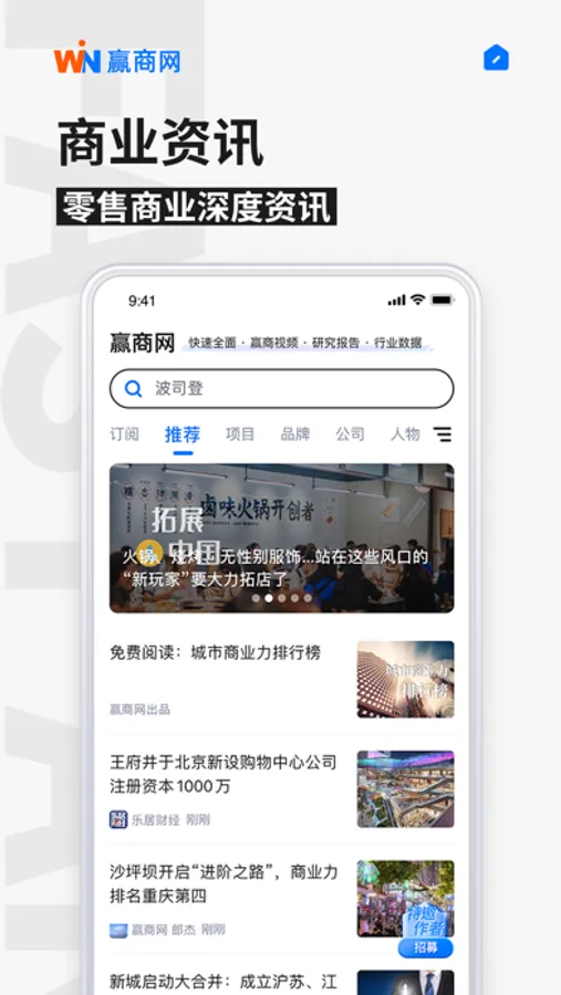 赢商网APP通过资讯、资料下载、报告数据、项目/品牌库几大板块,全面聚合零售商业行业资讯,海量商业地产资料,专业的输出行业报告,行业品牌拓展选址库、项目招商信息库,全力打造成为零售商业人的工作助理。