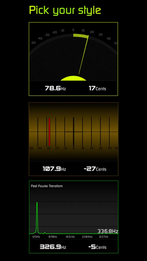 • Accurate up to 1/100 semitone (1 cent) using advanced signal processing algorithm.