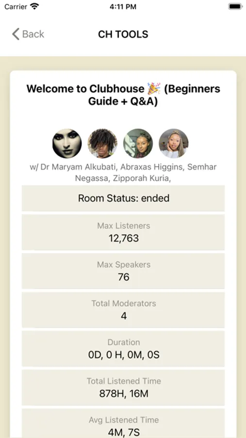 Below are some of the features available to you which you can use to analyse clubhouse rooms.