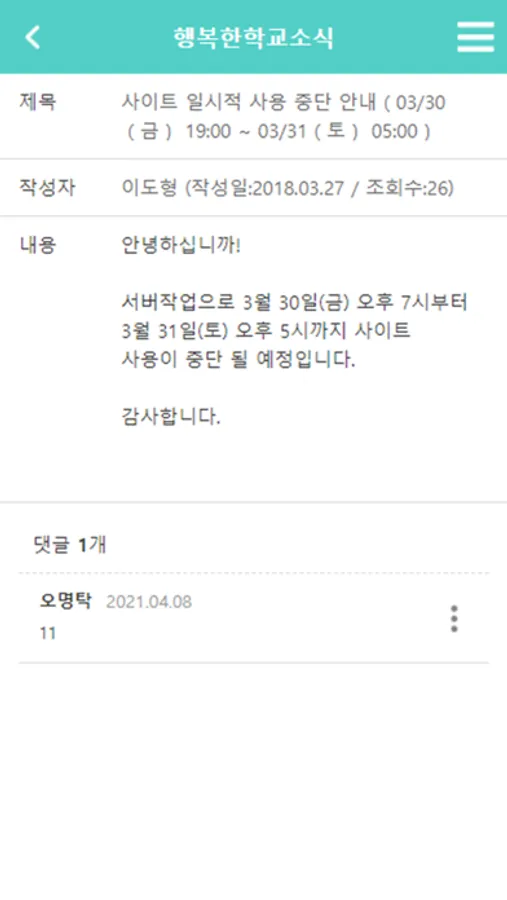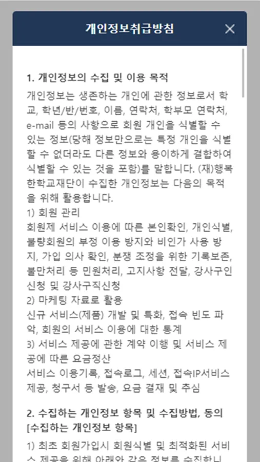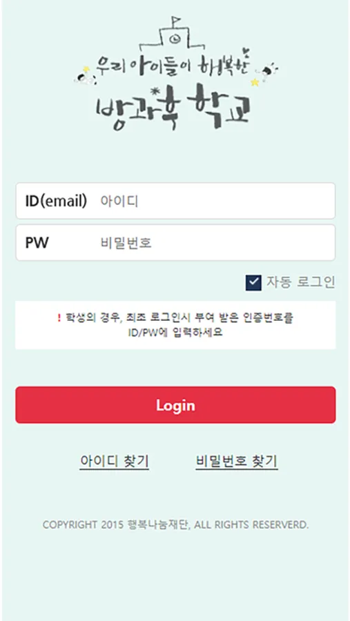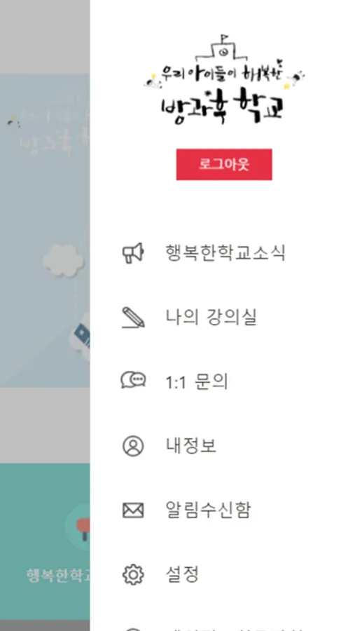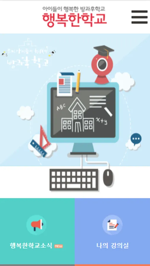 학생들은 가입한 계정으로 로그인을 하면 행복한학교 서울에서 운영하는 방과후수업의 공지사항, 등록된 본인의 수업, 알림 현황 등 을 확인 할 수 있게 구성되어 있습니다.