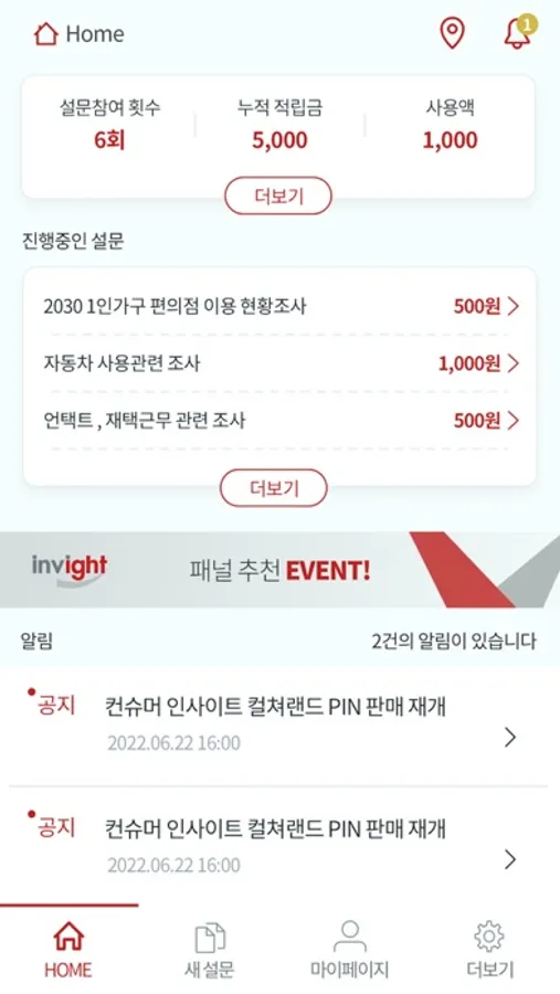 1. 앱 설치 후 일반회원으로 가입하시면 다양한 이벤트와 설문 참여 기회가 제공 됩니다.