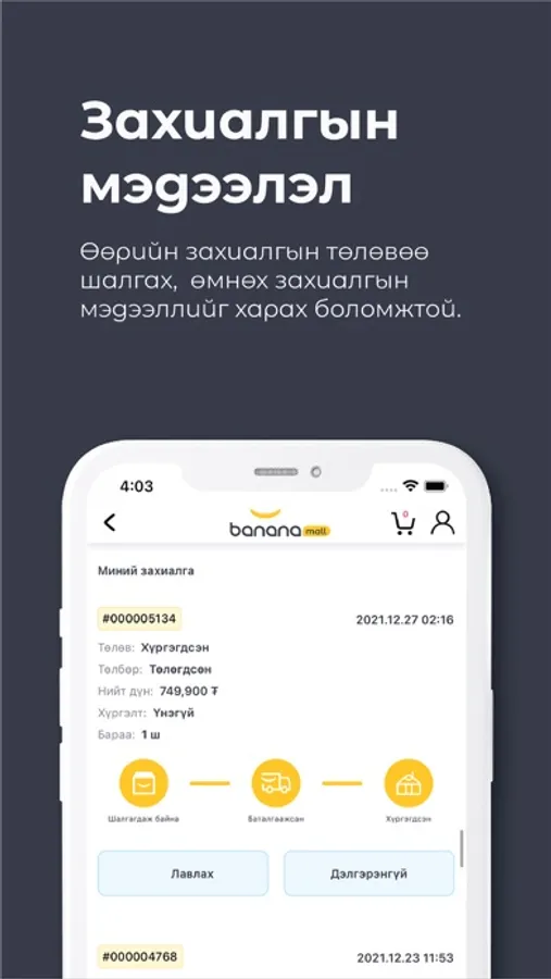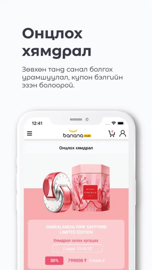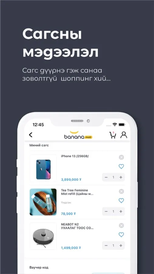 Bananamall.mn нь технологи болон гоо сайхны албан ёсны брэнд, бүтээгдэхүүн нийлүүлэгчдийн нэгдсэн платформ юм. Хэрэглэгч өөрийн хэрэгцээт бүтээгдэхүүнээ онлайнаар хамгийн хурдан шуурхай, амар хялбараар худалдан авах боломжийг олгодог