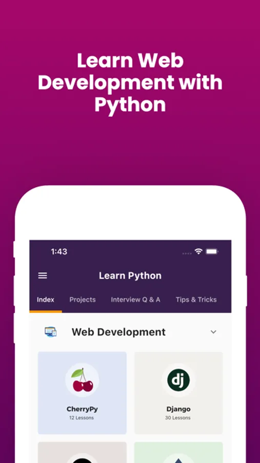 Python provides multiple frameworks for the web development. This app covers most commonly used python libraries which are used for web development. All the mentioned libraries in this Learn Python Application are the first choice in certain project-specific conditions/requirements. Also, while trying to select the libraries, the developers interest (based on their queries and community support) is considered.
