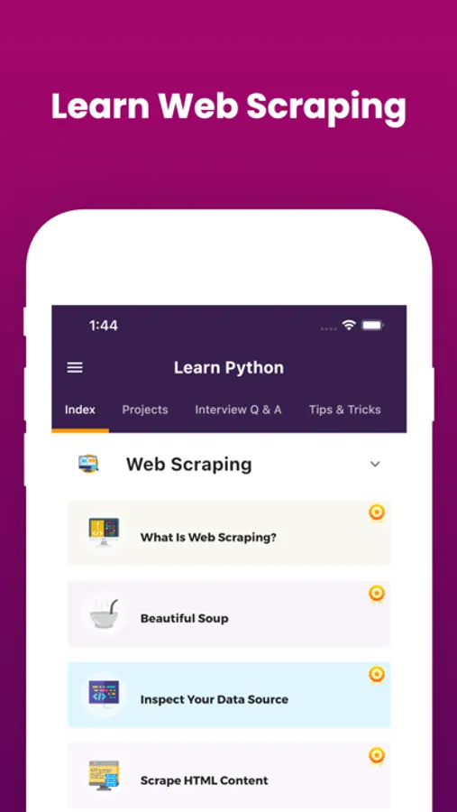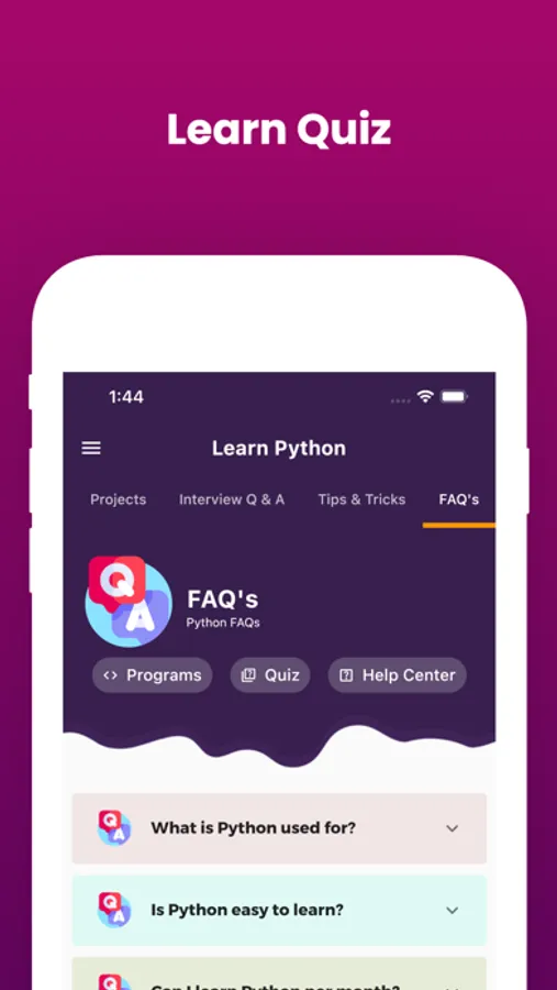 Learn Python is a must have app for all coding learners or computer science students to learn python programming language whenever they want and wherever they want. Whether you’re preparing for a python interview or any exam that requires python programming knowledge, you can find amazing content on this programming learning app.