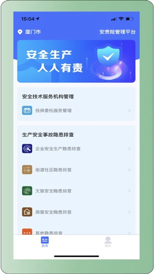 (安全技术服务机构管理):根据企业类型调取相应检查模板,对企业进行隐患排查服务。查看企业基本信息,委托协议等,为企业安全生产指导提供科技手段。 (企业管理):查看保单、隐患整改治理,安全生产教育培训。提高企业安全生产管理水平和管理意识。