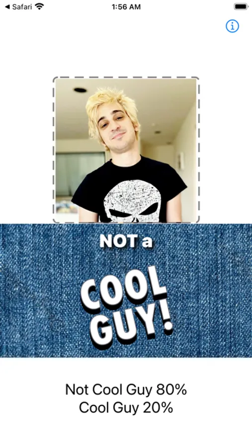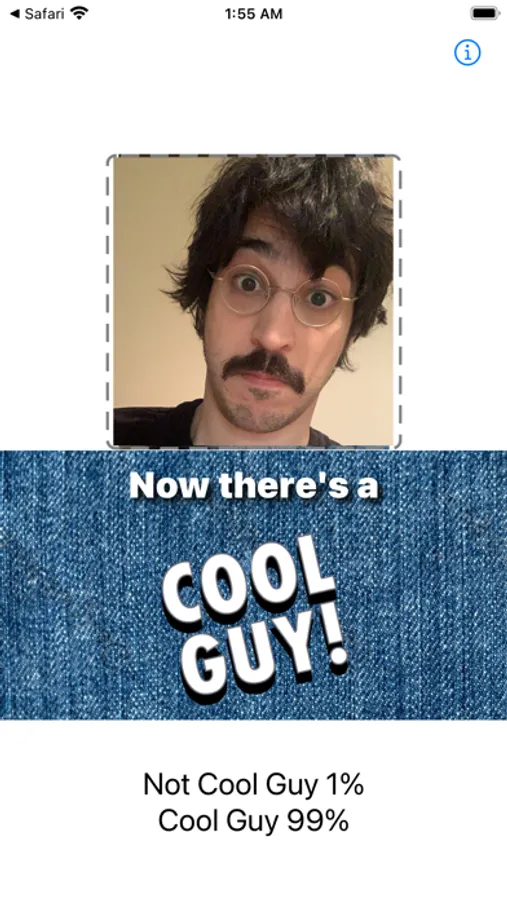 Upload an image from your photo album or take a picture with your device's camera and find out how cool the person in the photo is.
