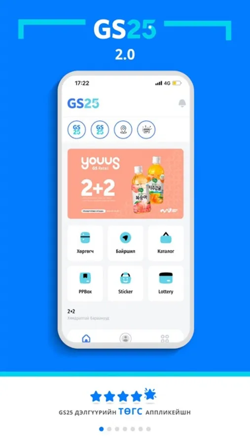 GS25 ая тухтай дэлгүүрээс худалдан авалт хийх бүрдээ оноо цуглуулж зарцуулах, урамшуулалт аянд оролцох, тоглоом тоглох, 1+1, 2+2 бүтээгдэхүүнээр Миний хөргөгчөө дүүргэх эсвэл бусадтай хуваалцах, оноо болон картаар купон, ваучер худалдан авах гээд дүүрэн боломжууд бидний LIFESTYLE PLATFORM-д бий. Хэрэглээ бүрийг тань урамшуулъя.