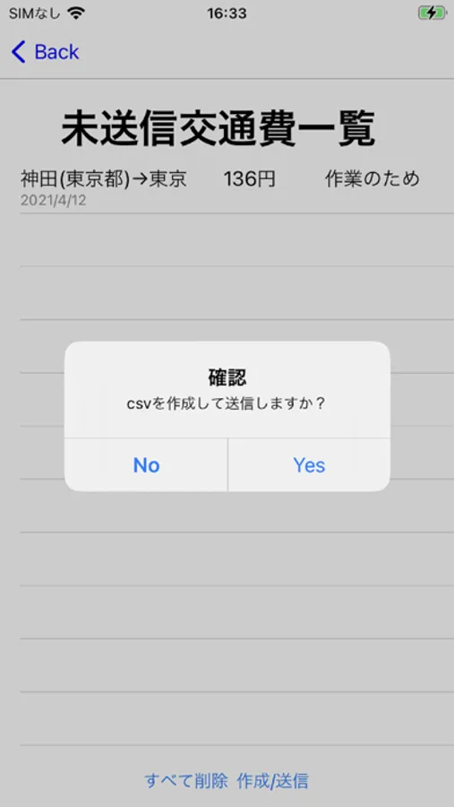 使った交通費のサマリーをCSV形式のファイルにまとめ、メール送信します。