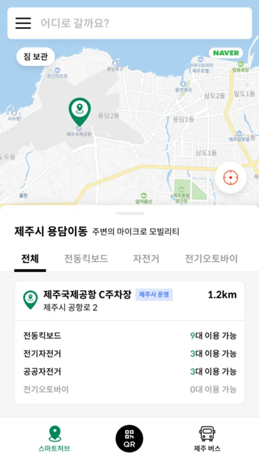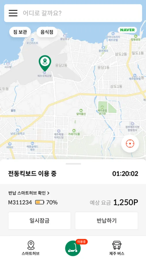 - 위치정보: 사용자의 현재 위치가 지도상에 표시됩니다. 사용자의 현재 위치를 기반으로 버스, 공유 모빌리티, 관광지, 짐보관 장소 정보를 제공합니다.