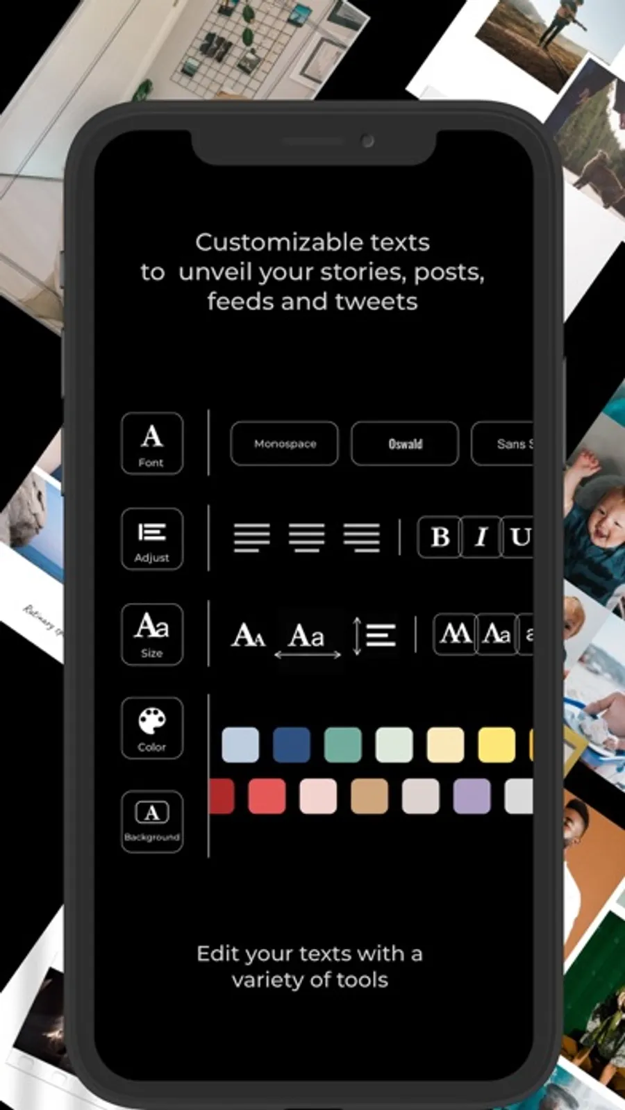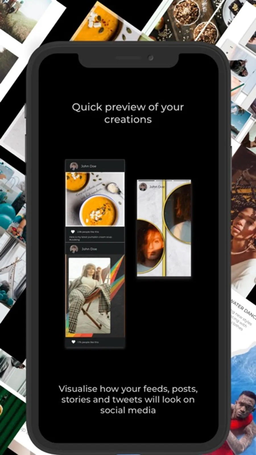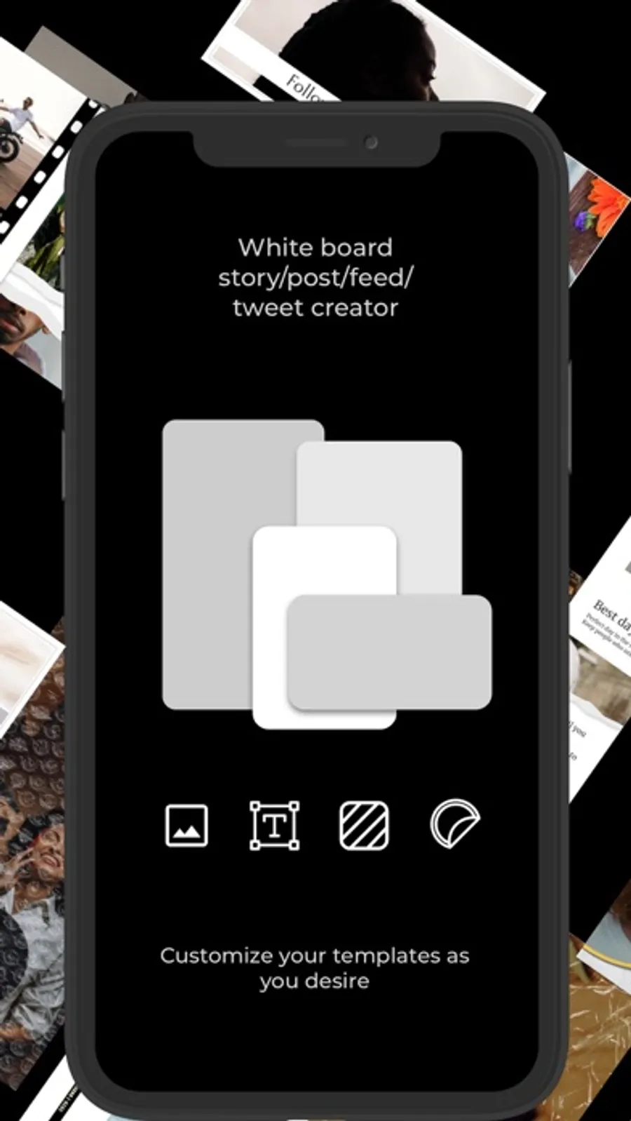 Create Fast, easy, and sophisticated stories, posts, feeds and tweets for Instagram, Facebook, Snapchat or any other social media platform! You can unveil your stories effortlessly. It's for free, no login needed.