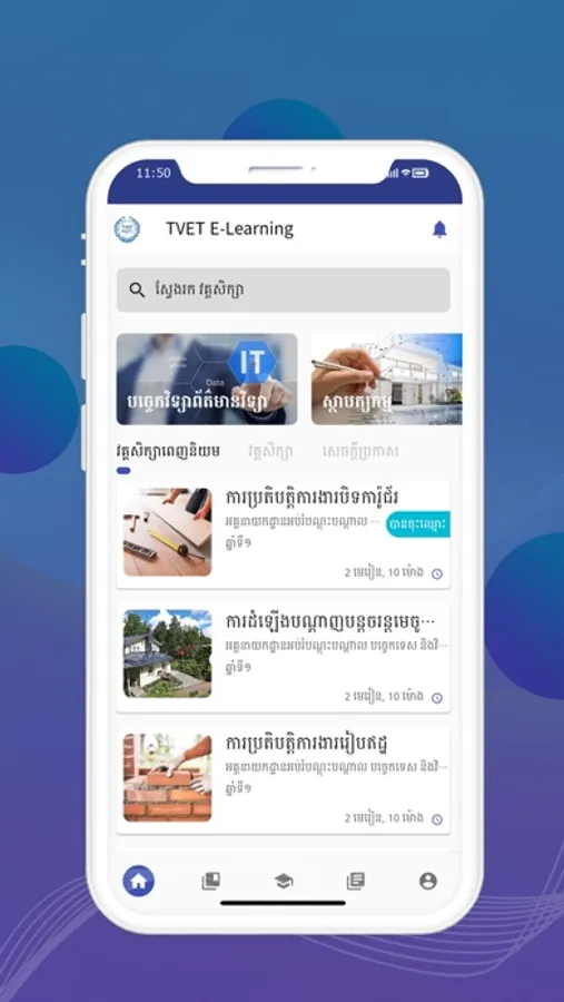 Under the leadership of H.E Dr. Ith Samheng, Minister of Ministry of Labour and Vocational Training and H.E Dr. Pich Sophoan, Minister Attached to the Prime Minister and Permanent Secreatary of State of Ministry of Labour and Vocational Training, TVET e-Learning Platform is developed with the intention to provide students with additional learning resources that can be consumed anywhere anytime which focus on Technical Vocational Education and Training (TVET) programs in Cambodia.