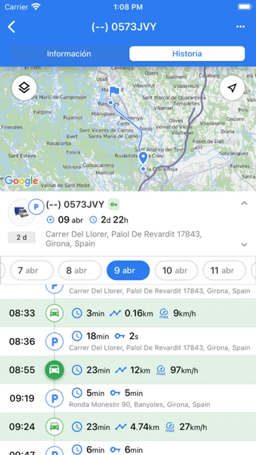 • Ruta realizada durante el día o entre fechas