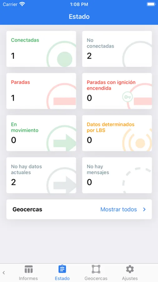 • Estado de tacógrafo (conducción, descanso, otros trabajos, disponibilidad)