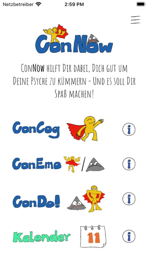 ConNow soll Spaß machen, Du sollst es gerne benutzen, deshalb ist es wie ein Spiel aufgebaut und lustig gestaltet.