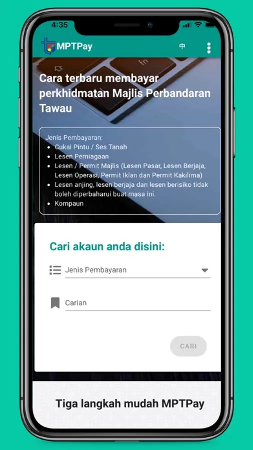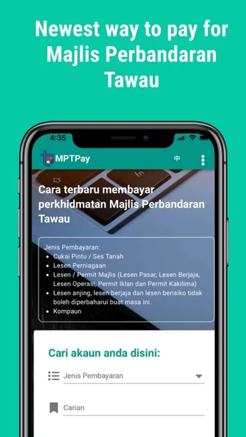 MPTawauPAY is a new and easy way to help you pay for your Majlis Perbandaran Tawau services. Everything is only a tap away, whether you’re using the app over WiFi or Mobile Network.